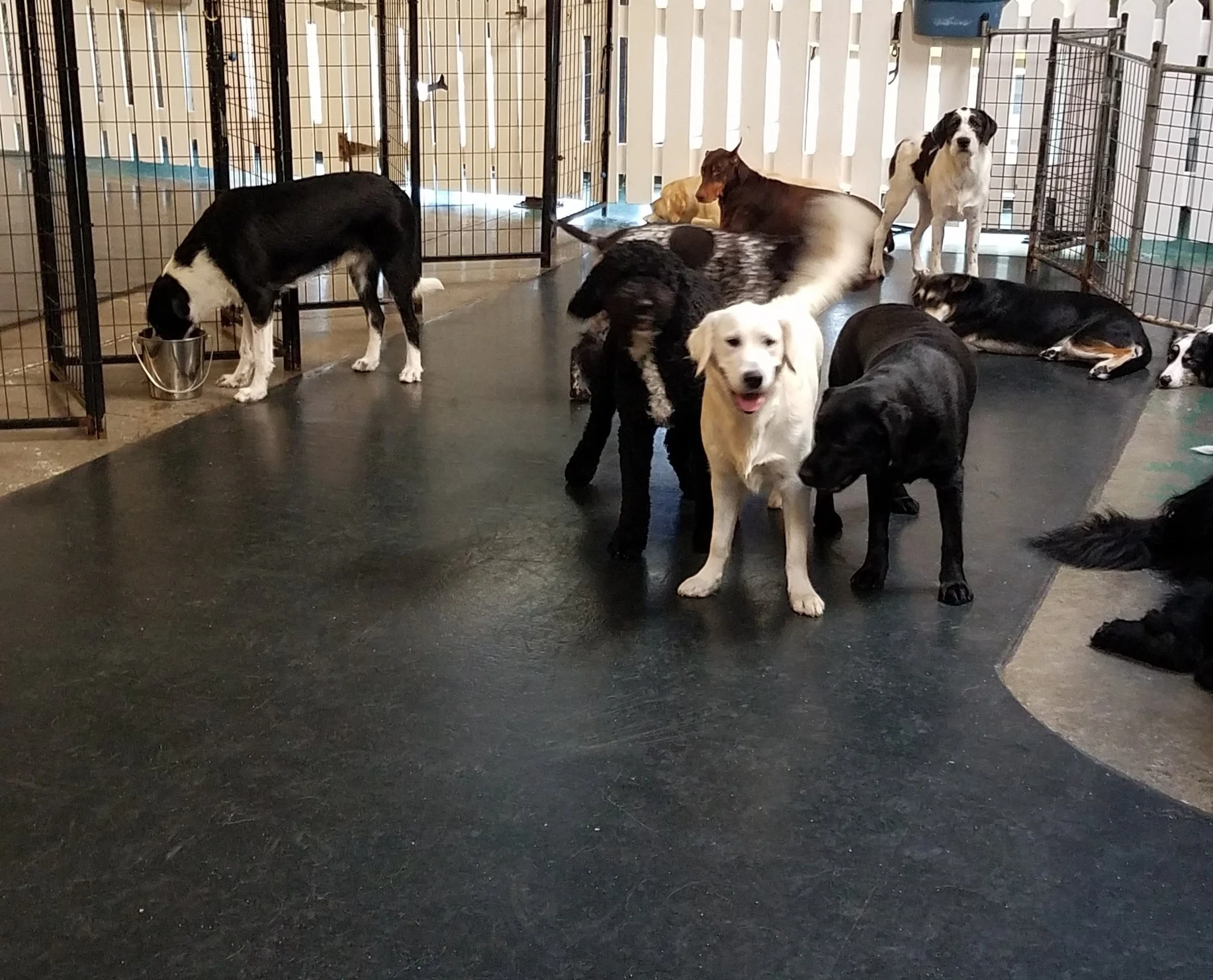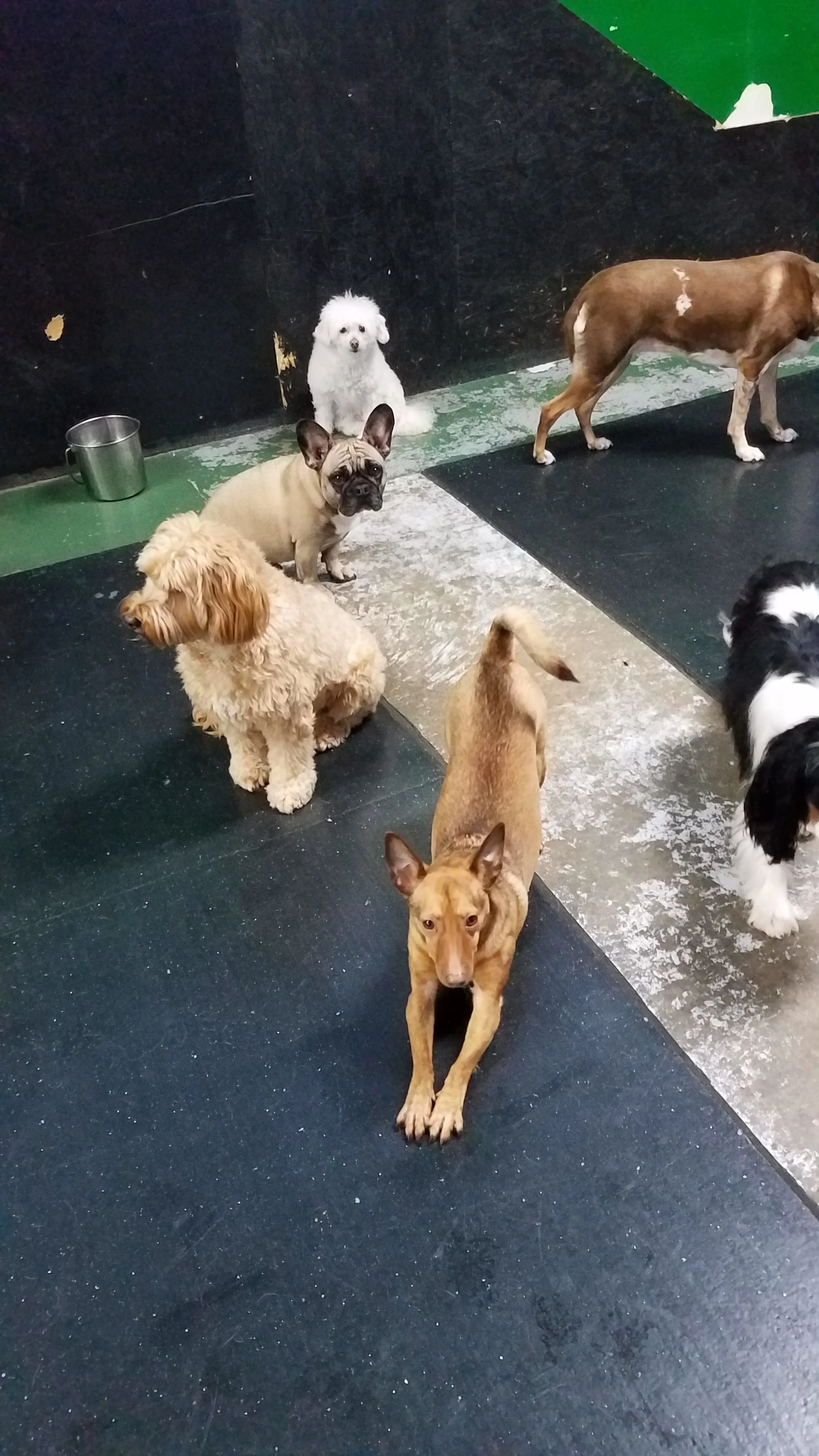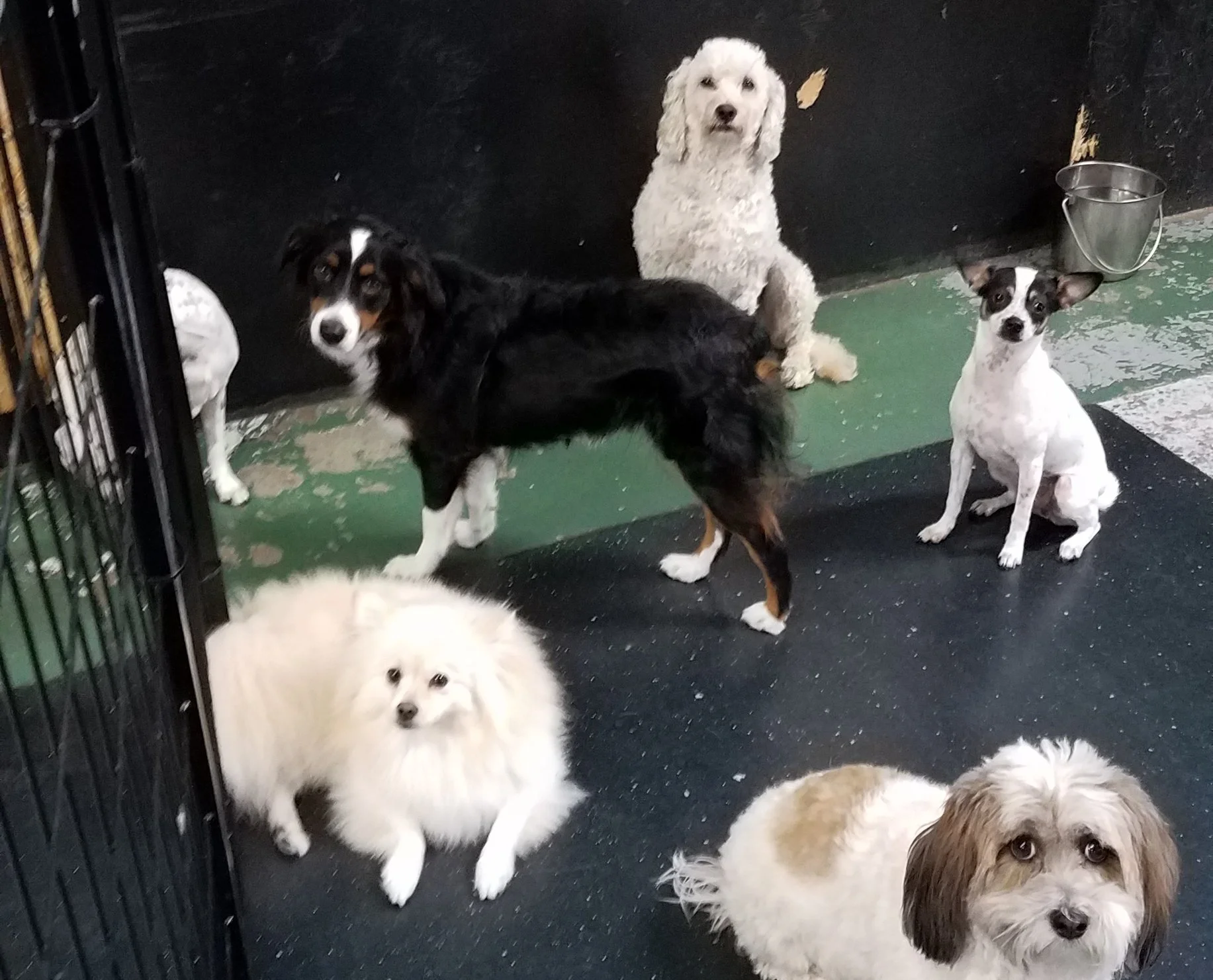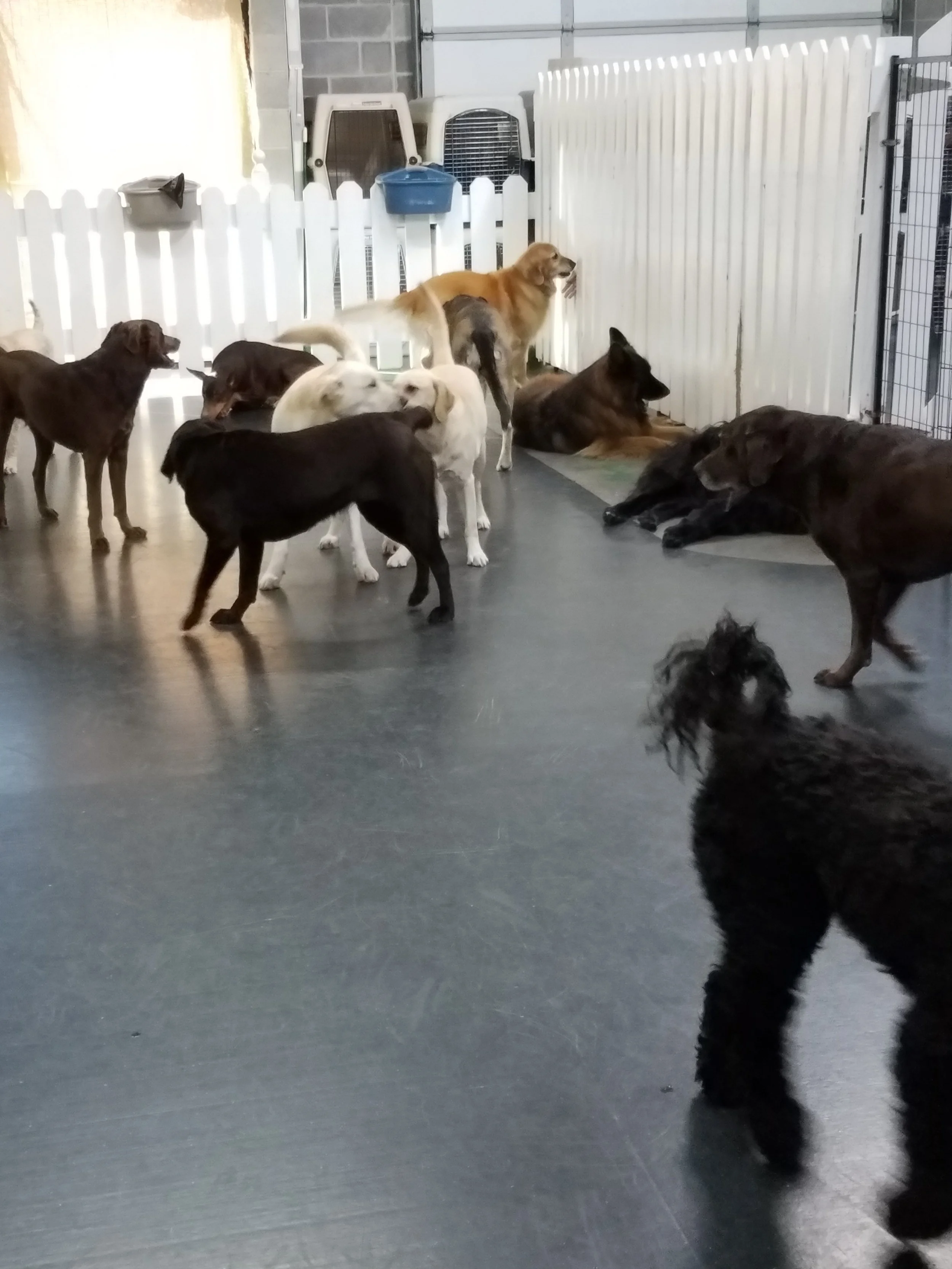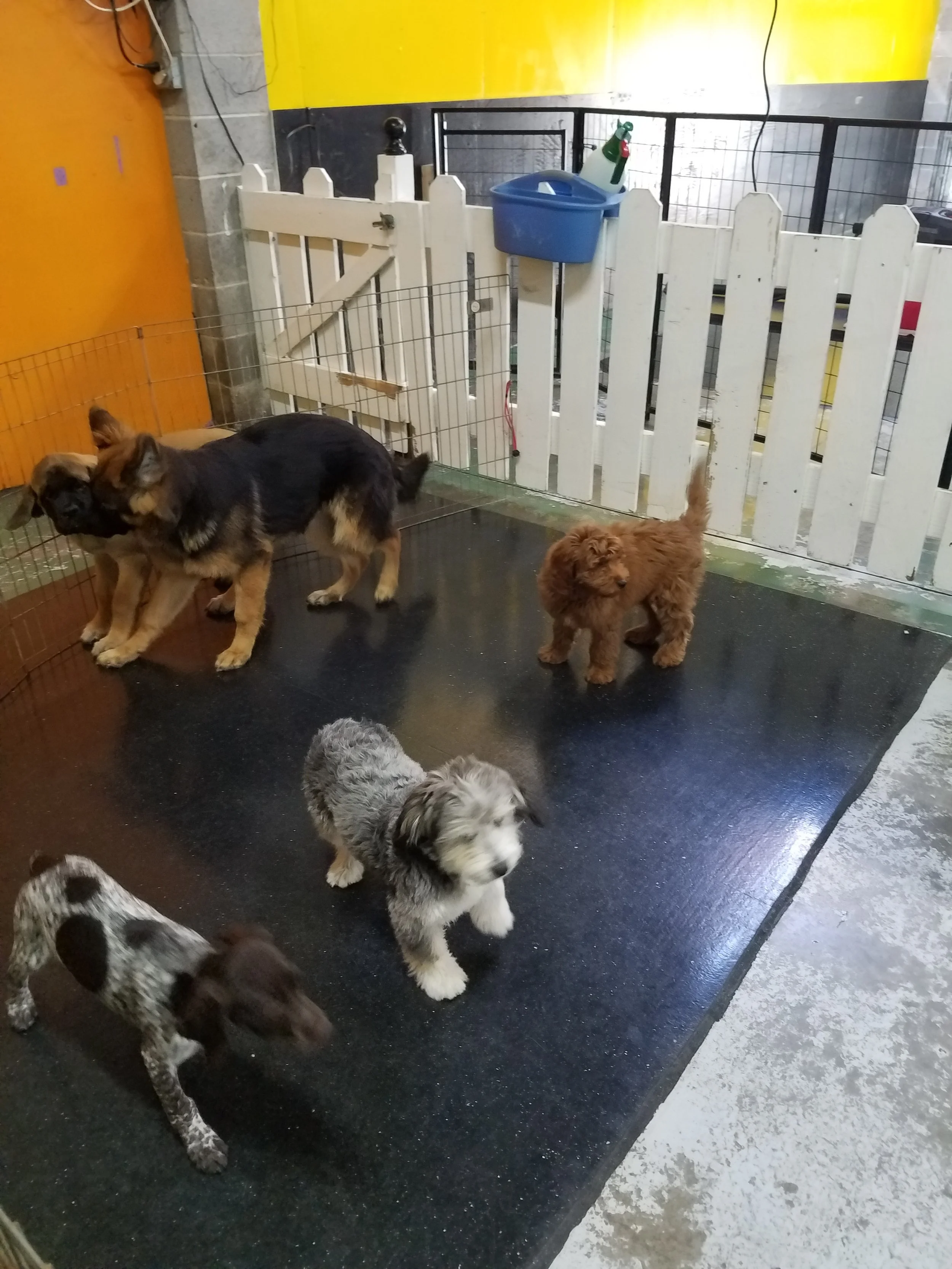 Belly up Sully invites Code to smell him, while in the background Oakuly invites Denali to play.