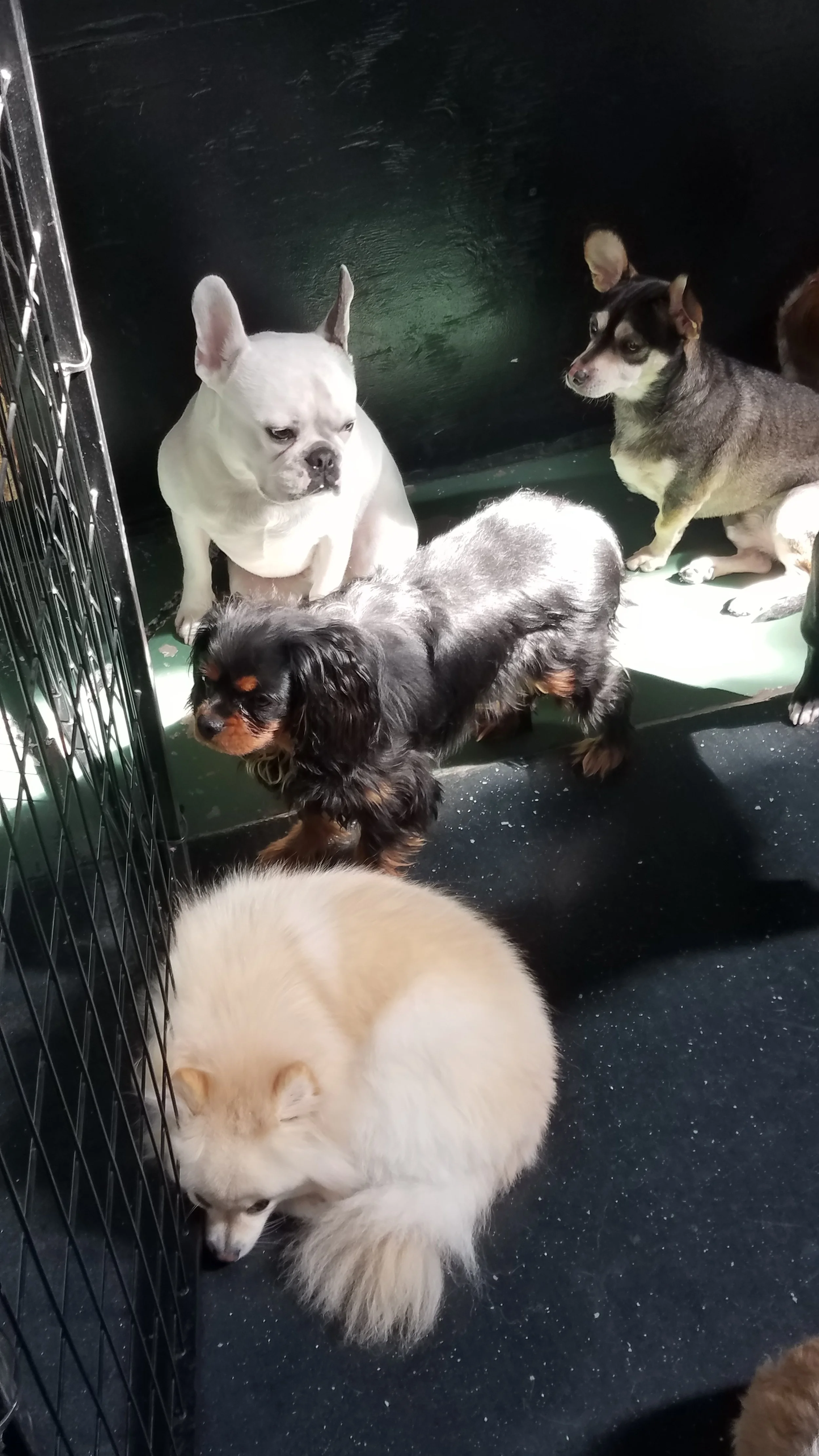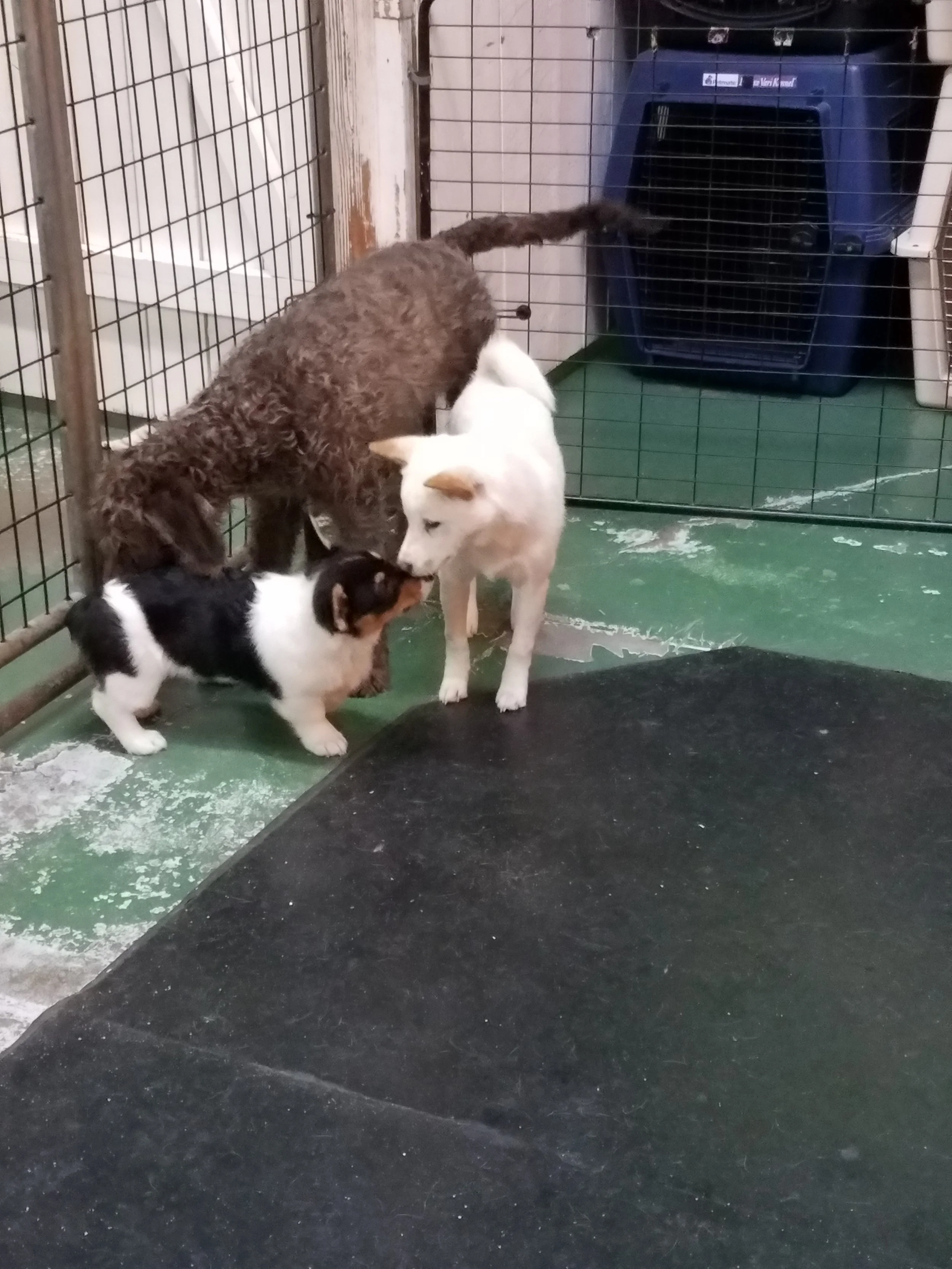 Reggie Shiba Inu asking if he can play with Winston and Andre.